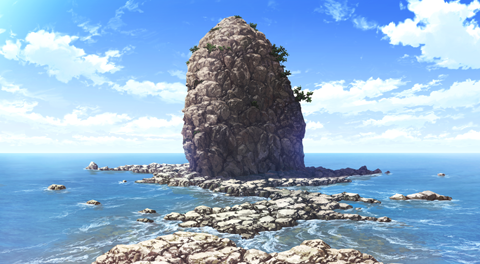 岬の岩場にある巨大な岩の島。海の中から裸の岩が無造作に突き出している姿から、その名前が付けられた。